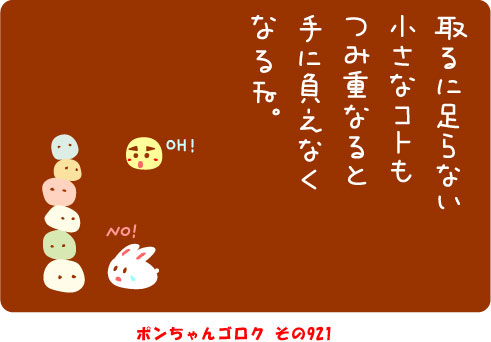取るに 足らない 小さな コトも つみ重なる と 手に 負えなく なる ね。 …