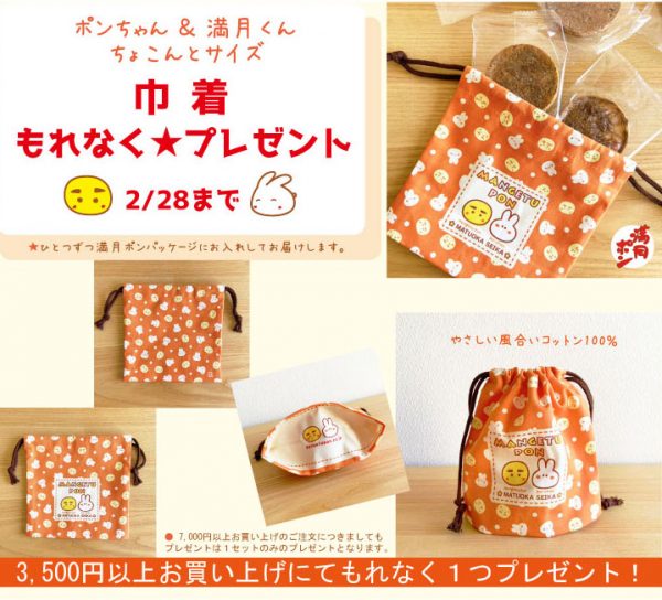 ちょこんとサイズ『ポンちゃん巾着』もれなくプレゼント!2/28まで! やさしい風合い コットン100%ポンちゃん&満月くん 巾着★期間中、満月ポンを3500円以上お買い上げにてもれなくプレゼント★ 数量限定 お早めに! ☆ぽんちゃん巾着もれなくプレゼント☆ …