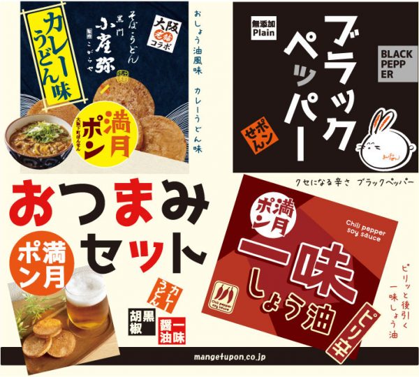 ◆おつまみセット満月ポン◆新発売! ビール・日本酒・ワイン・カクテルいろんなお酒によく合います! おしょう油風味 カレーうどん味クセになる辛さ ブラックペッパー味ピリッと後引く 一味しょう油 味3種×2袋(6袋セット) 数量限定 お早めにどうぞ! ◆おつまみセットご…