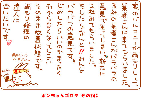 家のバルコニーが 雨もりしてて 業者さんに 来てもらいました。